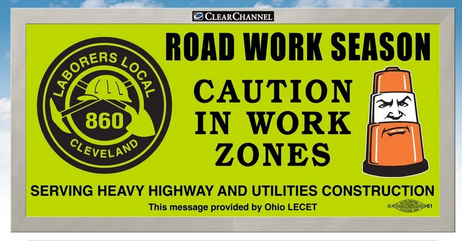 To help promote safe, distraction-free driving in work zones, Laborers Local 860 purchases billboards throughout its jurisdiction that urge motorist to drive safely in their work zones.